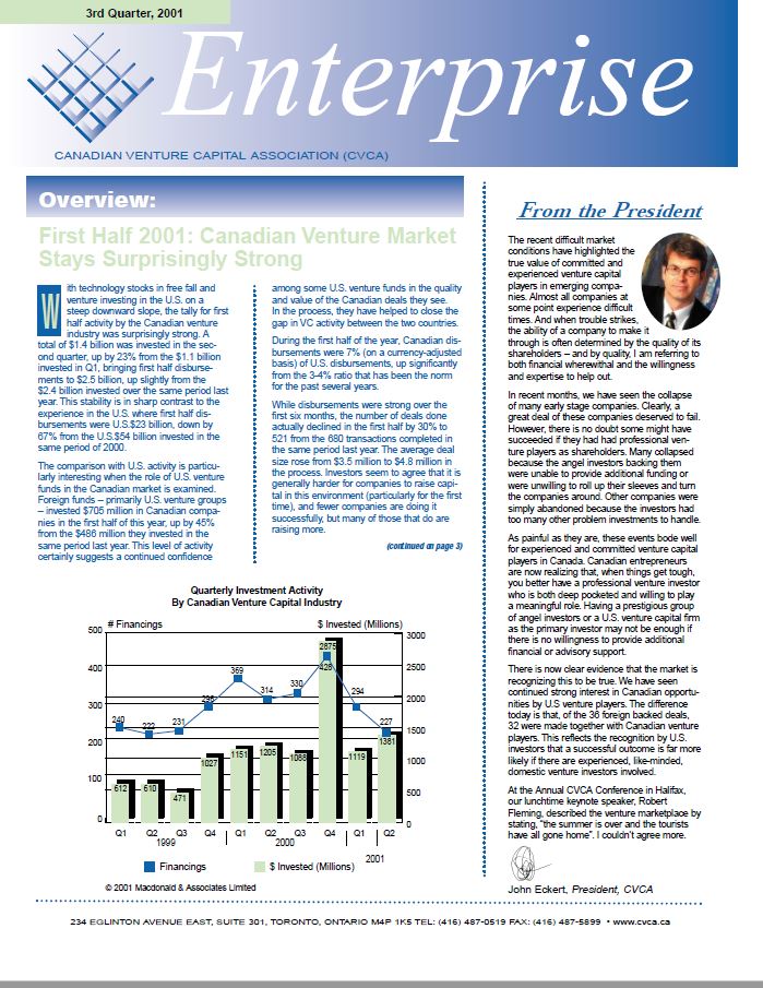 Celebrating 50 Years of Impact and Innovation in Canadian Private Capital In 2024, the Canadian Venture Capital and Private Equity Association (CVCA) proudly celebrates its 50th anniversary, marking half a century of pivotal influence in shaping Canada’s economic, growth, and innovation landscapes. Since its inception in 1974, the CVCA has been crucial in fostering growth and innovation in Canada by representing and advocating for the venture capital and private equity industry. These industries have propelled the inception and expansion of groundbreaking Canadian companies across various sectors. Venture capital and private equity are vital instruments in Canada’s economic engine, driving innovation, creating jobs, and future-proofing the economy by transforming cutting-edge ideas into tangible solutions and thriving businesses. These investments not only contribute significantly to our economic resilience but also create thousands of jobs and secure the retirement ambitions of millions of Canadians by ensuring robust and diversified pension fund investments. As we look forward to the next 50 years, the CVCA continues to stand at the forefront of a rapidly evolving industry landscape, committed to amplifying its impact and reach. The CVCA aims to continue broadening its influence and resources, supporting the growth of Canadian businesses and, consequently, the national economy, ensuring that the venture capital and private equity sectors remain vibrant and integral to Canada’s future economic prosperity. Decade by Decade: Building a Legacy 1960s-1970s Pioneering Venture Capital in Canada The Canadian venture capital sector began its formative journey in the 1960s and 1970s, marked by slow yet meaningful growth. This period laid the essential groundwork for a structured VC industry in Canada, characterized by the initial formation of foundational investment strategies. The Canadian VC industry began taking shape in the latter half of the 20th century, notably influenced by similar developments in the United States. Initially, the industry was characterized by a few pioneering efforts, often triggered by the establishment of VC firms in the US and their subsequent interest in Canadian market. Over time, these initial investments helped to establish a more structured VC industry in Canada, laying the groundwork for a growing investment ecosystem. 1971 Establishment of the Canada Development Corporation The Canada Development Corporation was established in Toronto, significantly backed by the Government of Canada. This entity played a pivotal role in nurturing Canadian companies by providing vital capital and support until its dissolution in 1986, demonstrating the early governmental support crucial for the industry’s growth. The CDC was not a typical crown corporation; it aimed to generate profits and was set to eventually have no more than 10% government ownership. Its creation was influenced by Walter Gordon’s efforts through the Royal Commission on Canada’s Economic Prospects and the Watkins Report to address foreign ownership and stimulate Canadian ownership in natural resources and industry. The corporation was notable for early significant acquisitions like Connaught Laboratories, and major investments in petroleum, mines, and petrochemicals including assets like Polymer Corporation. By 1982, the Canadian government held a 49% stake. It was dismantled in 1986 as part of broader privatization efforts. 1974 The Formation of a Unified Voice In response to restrictive government policies affecting venture capital investments, Gerald Sutton spearheaded the formation of the Association of Canadian Venture Capital Companies (ACVCC). This association aimed to unify the voices of venture capitalists to lobby for better investment protection and fair taxation, establishing a foundation for impactful advocacy. During its formation, the ACVCC set forth several objectives to guide its mission: to have meaningful input into new legislation, effect changes in tax legislation, and elevate its profile as the central authority on venture capital matters. These goals aimed to enhance the influence and effectiveness of the association within the broader financial and legislative landscapes of Canada. About Gerald Sutton, CVCA’s Founding President: Gerald Sutton arrived in Canada from England in 1941 and settled in Chatham, Ont. Two years later he joined the RCAF at the age of 17 and would be commissioned as a pilot. Following his service he enrolled in the Commerce program Queen’s University, graduating in 1948. A year later he graduated from the Master of Commerce program. Working in the head office of the Bank of Montreal he would become Assistant Economic Adviser but left in 1958 to be Director of Research at Nesbitt, Thompson And Company Limited, now BMO Nesbitt Burns. In 1961 he organized Canada’s first venture capital company, Canadian Enterprise Development Corporation Limited (CED). He was appointed General Manager in 1964 and subsequently President of CED. Throughout his career, Sutton was also a pioneer in organizing and supporting organizations such as the Association of Canadian Venture Capital Companies (ACVCC), which he founded in 1974 (now known as the Canadian Venture Capital and Private Equity Association (CVCA)). 1975-1976 Strengthening Industry Foundations During this critical period, the ACVCC began to gain traction, successfully influencing government policies to better accommodate the needs of venture capitalists regarding tax treatment. This era also saw the expansion of its membership to include significant financial institutions such as Mouvement Desjardin and RoyNat. By the end of 1976, the ACVCC had grown to include 16 associate members, demonstrating the expanding influence of the association within Canada’s economic landscape. 1977-1979 Educational Initiatives and Community Building The ACVCC placed significant emphasis on educational initiatives, organi